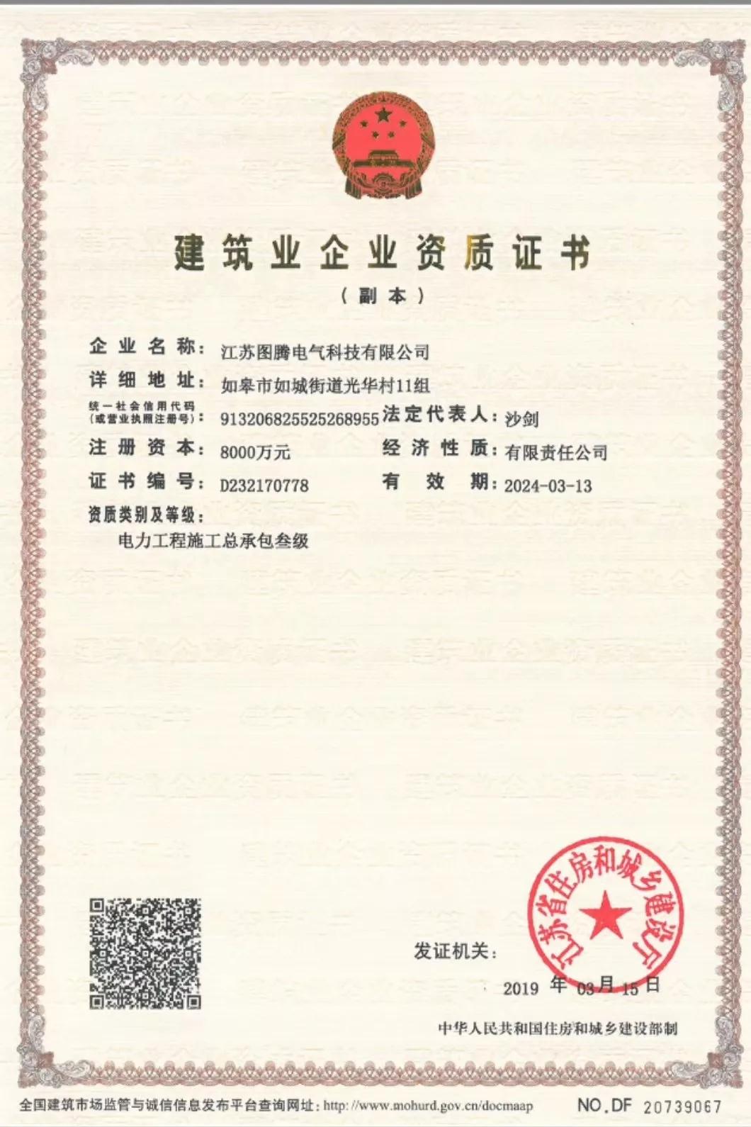 2019年3月15日,江蘇圖騰電氣科技有限公司通過(guò)國(guó)家相關(guān)部門嚴(yán)格審定認(rèn)可,獲得電力工程施工總承包三級(jí)資質(zhì)。這標(biāo)志著公司由傳統(tǒng)電力設(shè)備制造商向配電領(lǐng)域綜合服務(wù)商成功轉(zhuǎn)型,為公司提升綜合競(jìng)爭(zhēng)力,擴(kuò)大市...